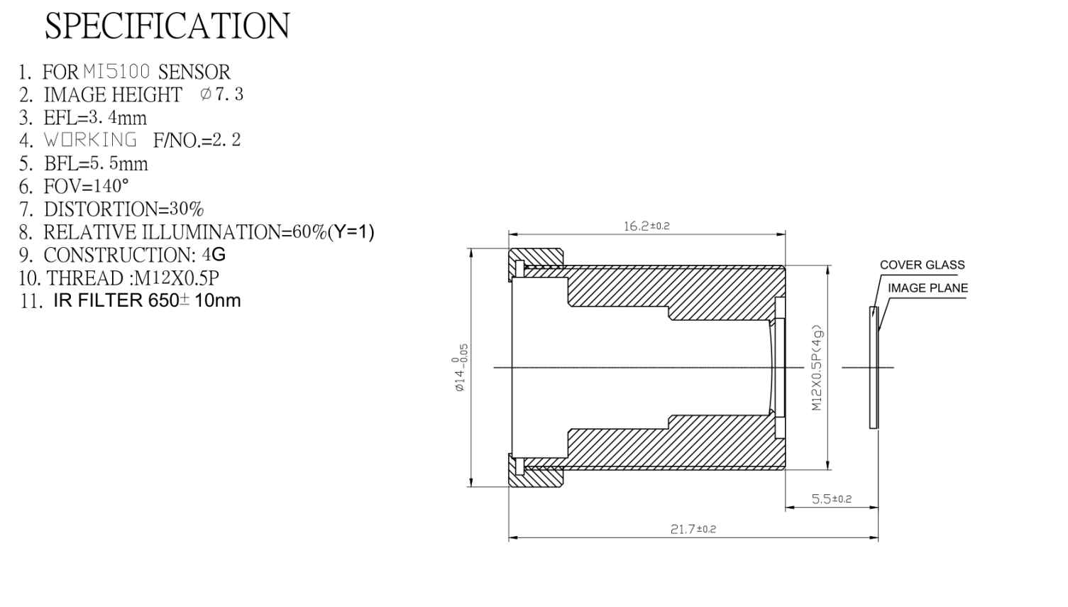 lens 1/2" fov M12 3.4mm lens 5MP Car CCTV camera lens