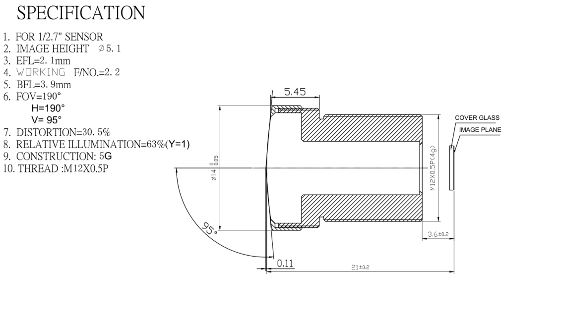 OEM ODM board module lens 5MP 1/2.3" 1/2.7" fov 200degree m12 lens for industrial camera