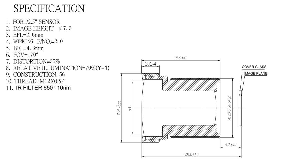 1/2.5" EFL2.6mm F2.0 Law Enforcement event data recorder Security access visible door bell CCTV lens