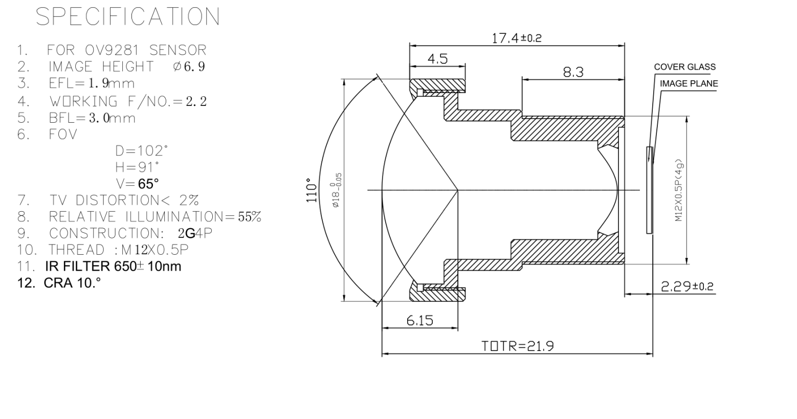 Distortionless 1.9mm F2.2 aperture Small Angle m12 smart home video doorbell lens