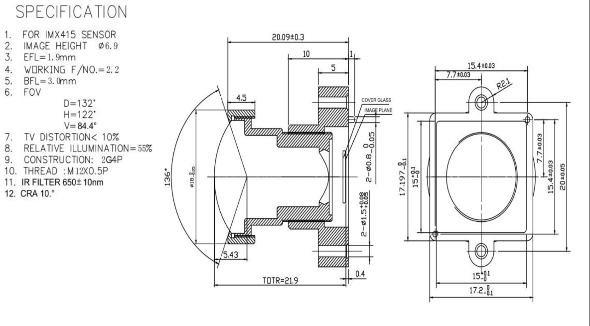 | FOV | D134°xH122°xV81° |