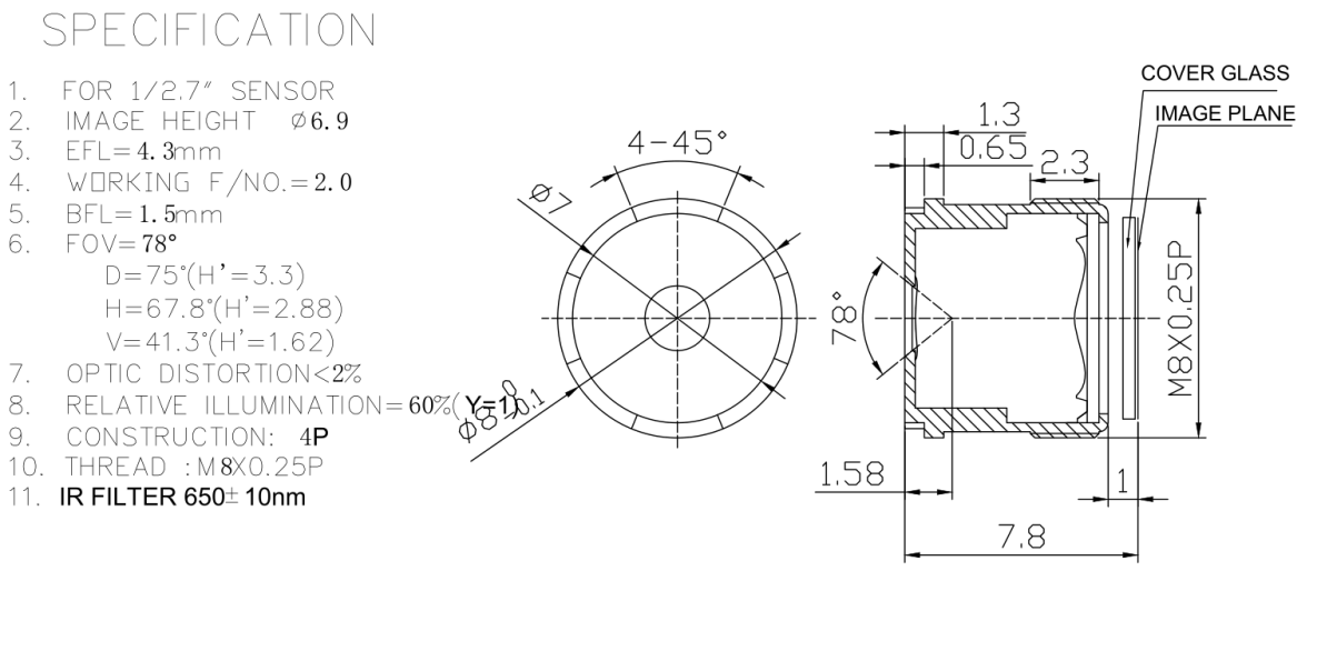 | Effective Focal Length=EFL | 4.3mm |