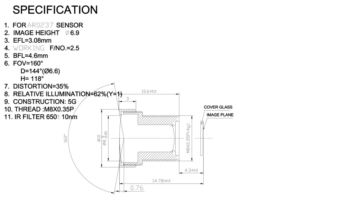 1/2.7" 3.08mm F2.5 Access control system lens fisheye camera panoramic CCTV lens