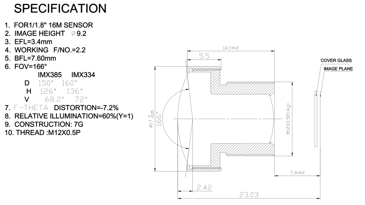 16MP M12 action sport camera lens MJ7086 EFL3.4MM H136 1/1.8"