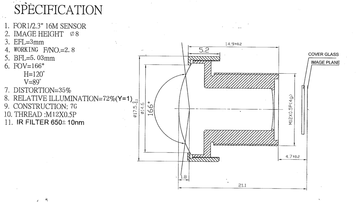 | FOV | D166°xH120°xV89° |