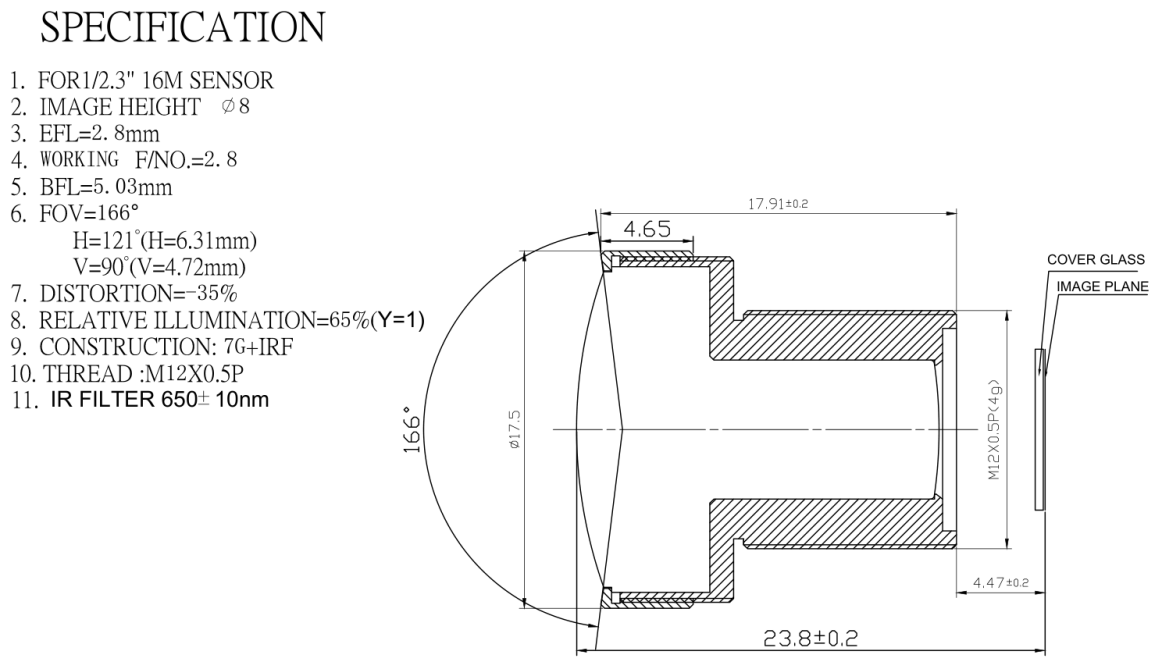 HD 2.8mm 1/2.3 Inch F2.8 M12 Mount Action Camera Lens For Sport DV Camera