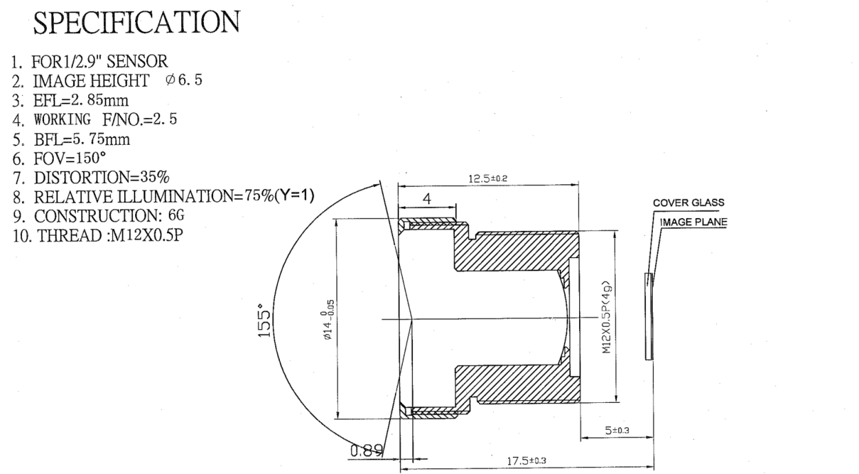 1/2.9" HFOV 150 degree 5MP low distortion lens for USB camera video conference