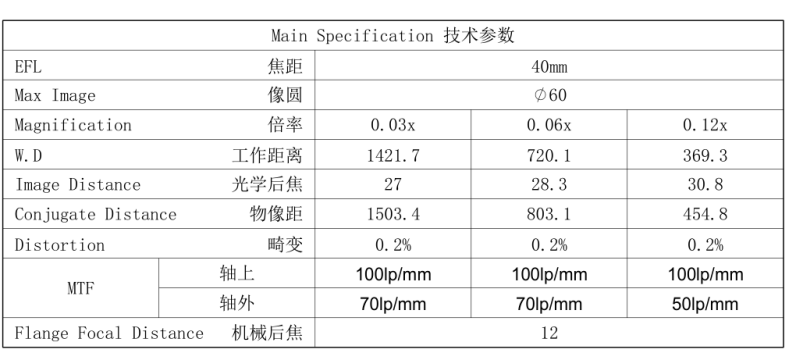| Effective Focal Length=EFL | 40mm |