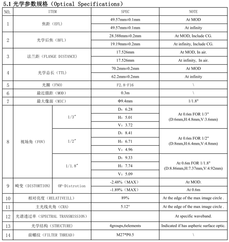 OEM 1.8 EFL 49.57mm M27 lens Machine Vision Lens HD 8MP F2.8 SMTSEC CCTV lens For IP Security Camera