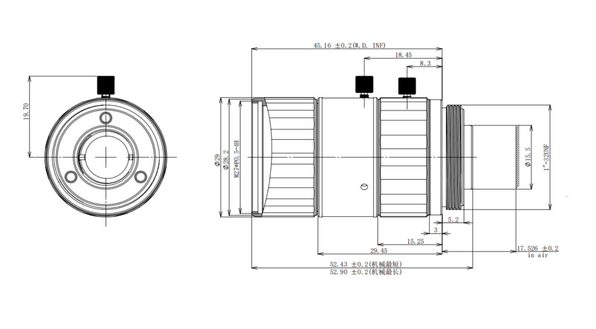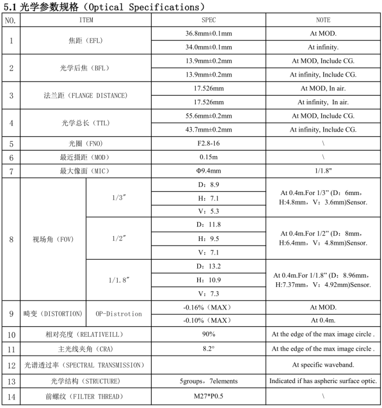 1.8" Format EFL36.8mm 8MP F2.8 C mount Machine Vision Lens