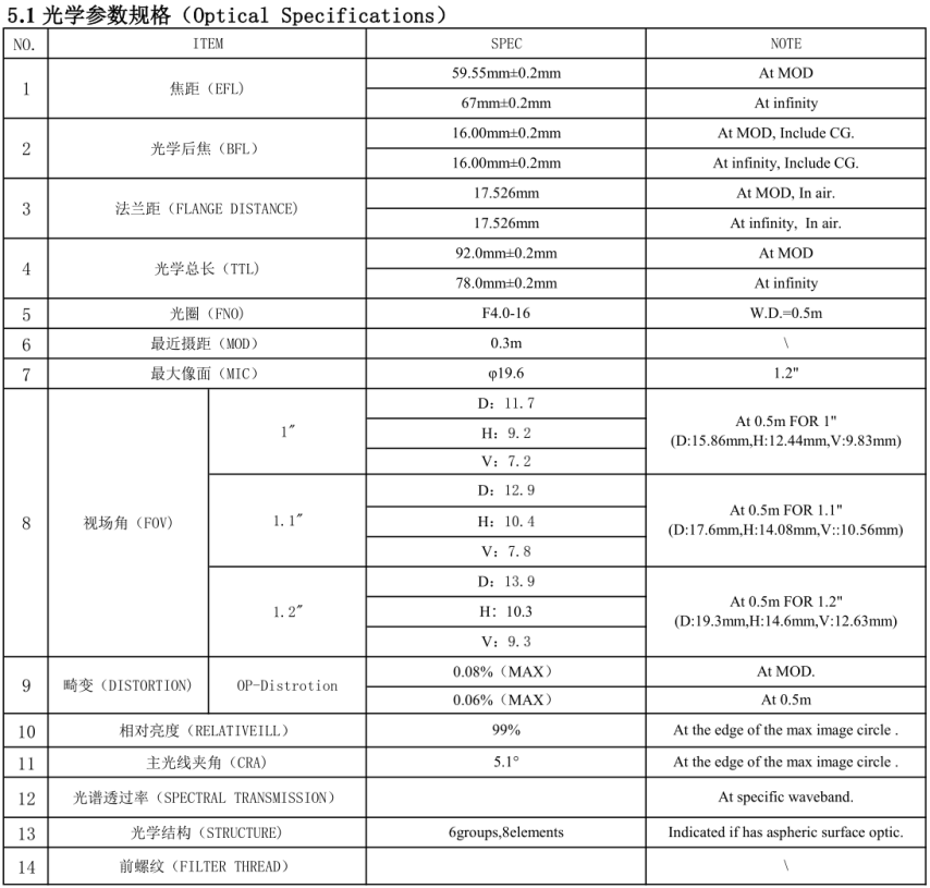 Long focal length lens, focal length 75MM lens, 1-inch large image area lens