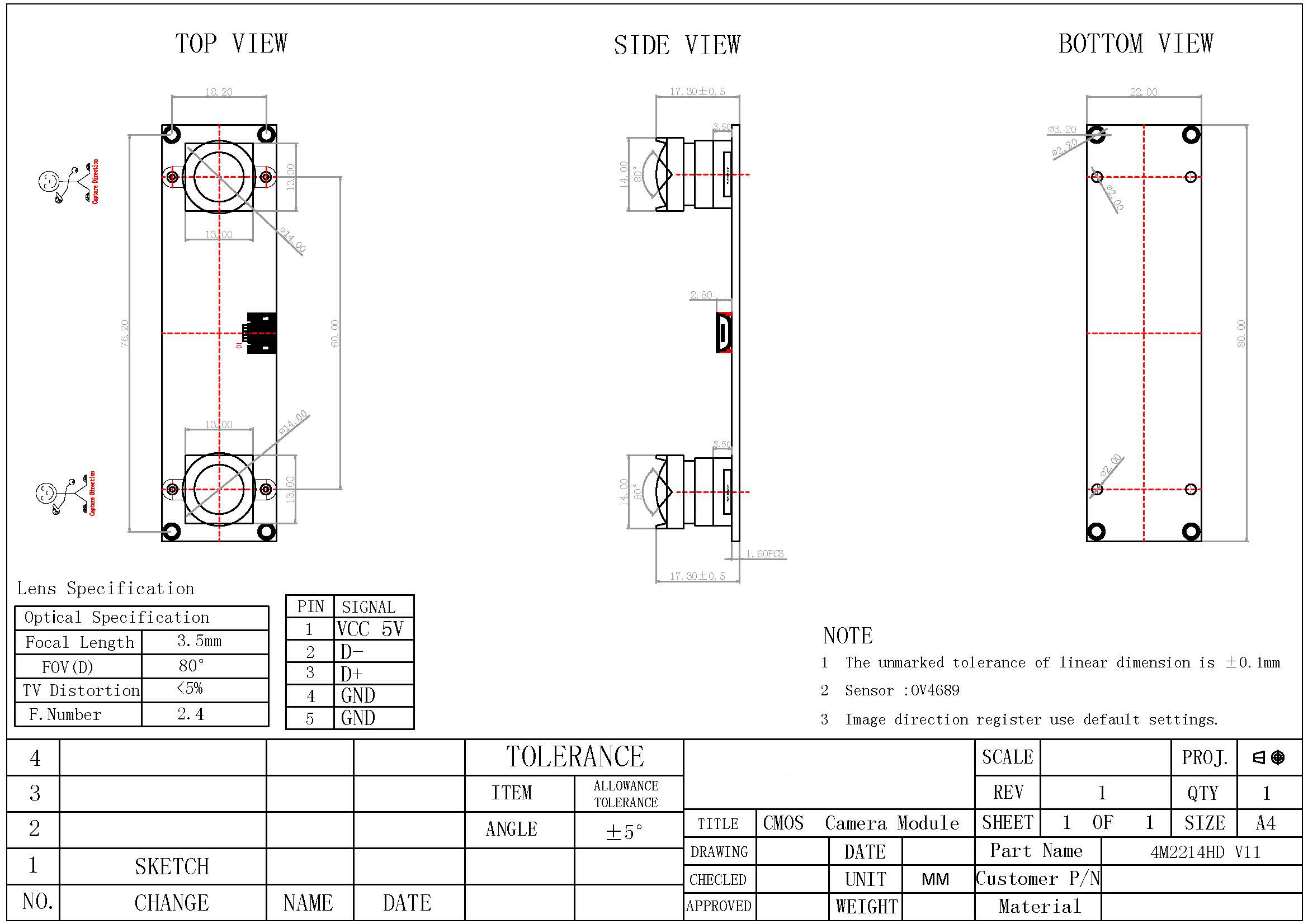 | Sensor | OV4689(1/3") |
