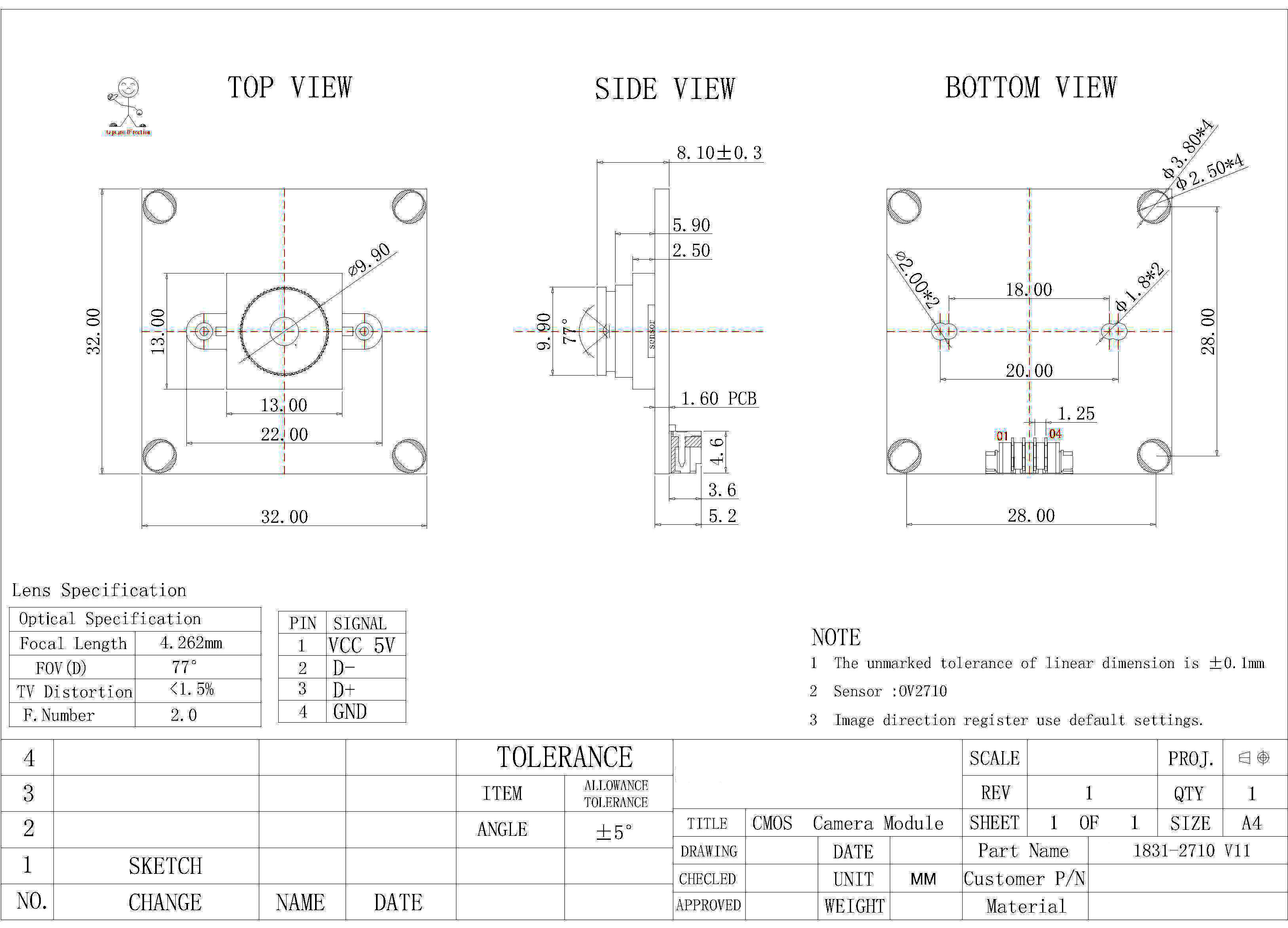 | Sensor | OV2710 (1/2.7" ) | |