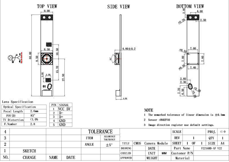 | Sensor | OS02F10 (1/4" ) |