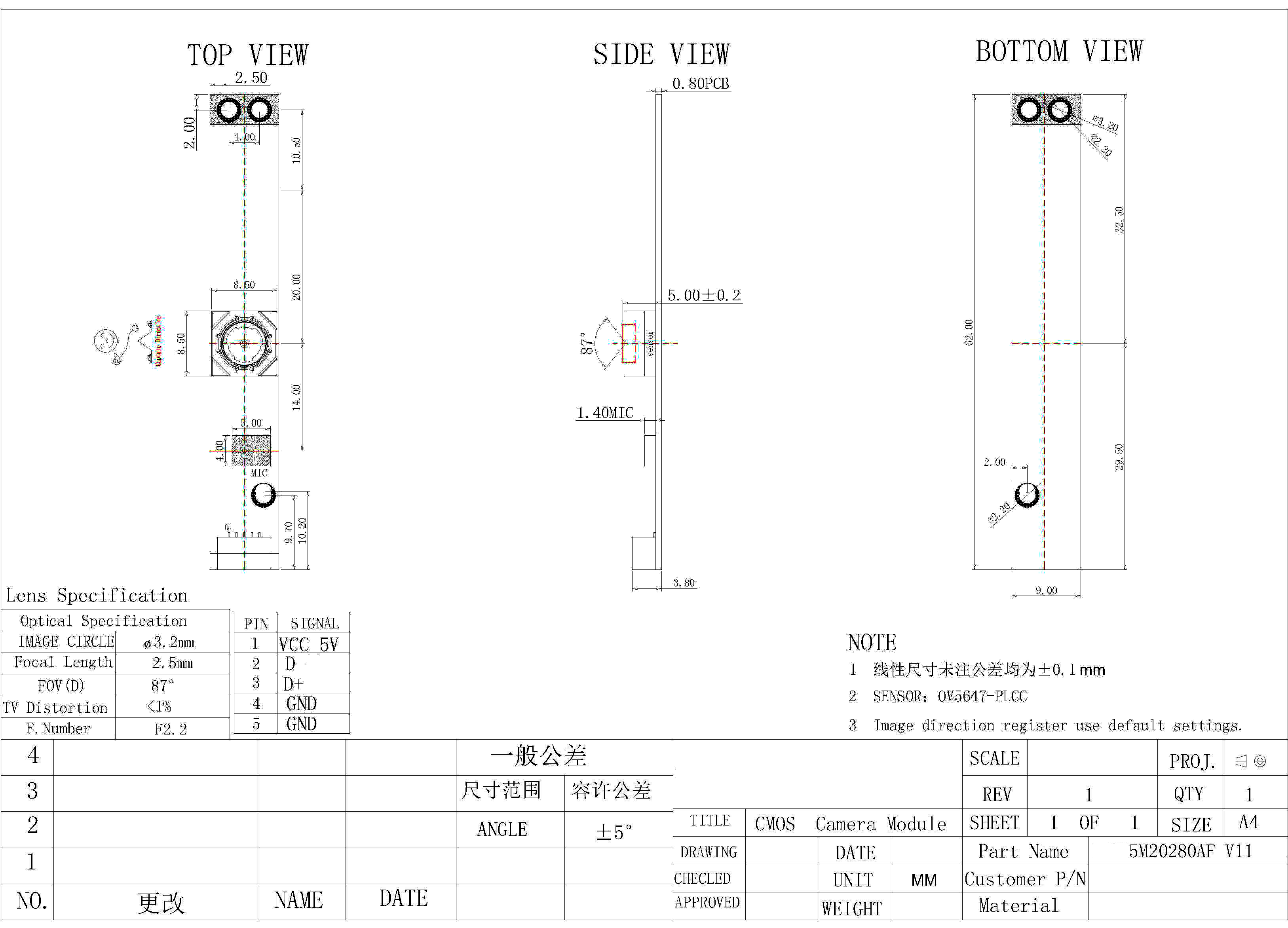 OV5647 PC all-in-one computer camera module 2K HD autofocus