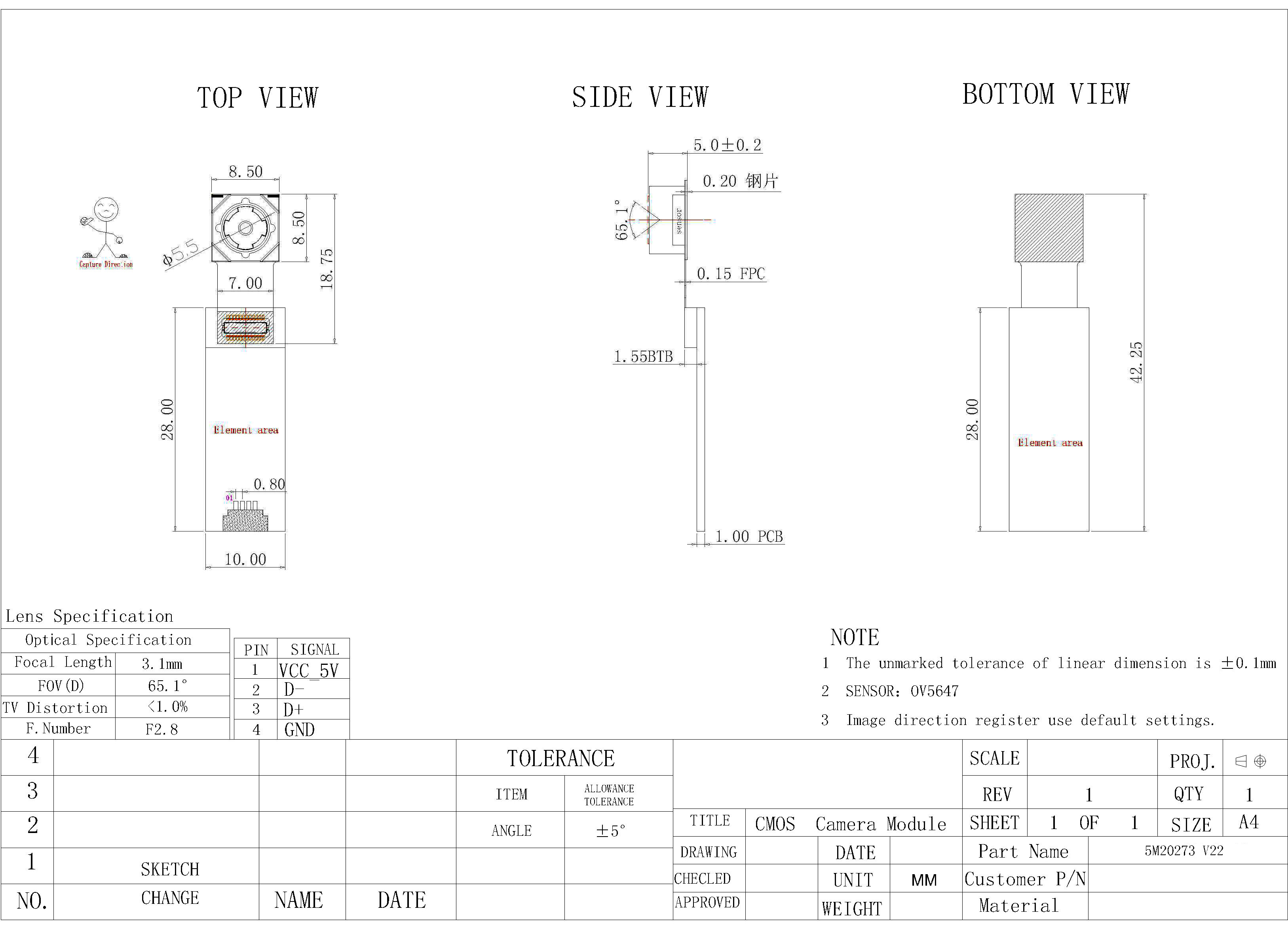 | Module Size | 42.25mm × 10mm × 5.0mm±0.2MM |
