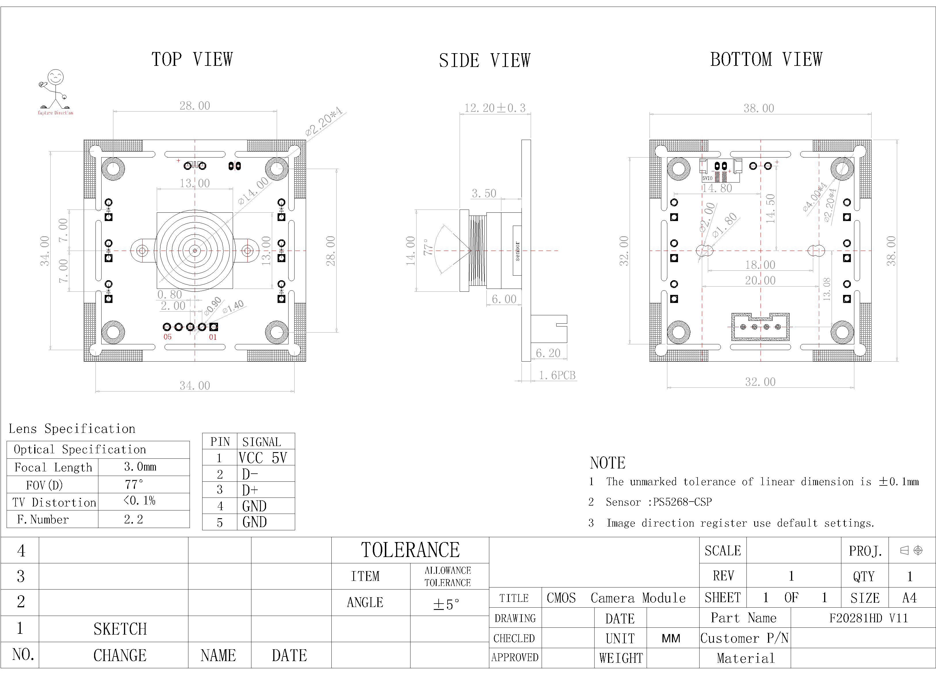| Module Size | 38mm × 38mm × 12.2mm±0.3MM |