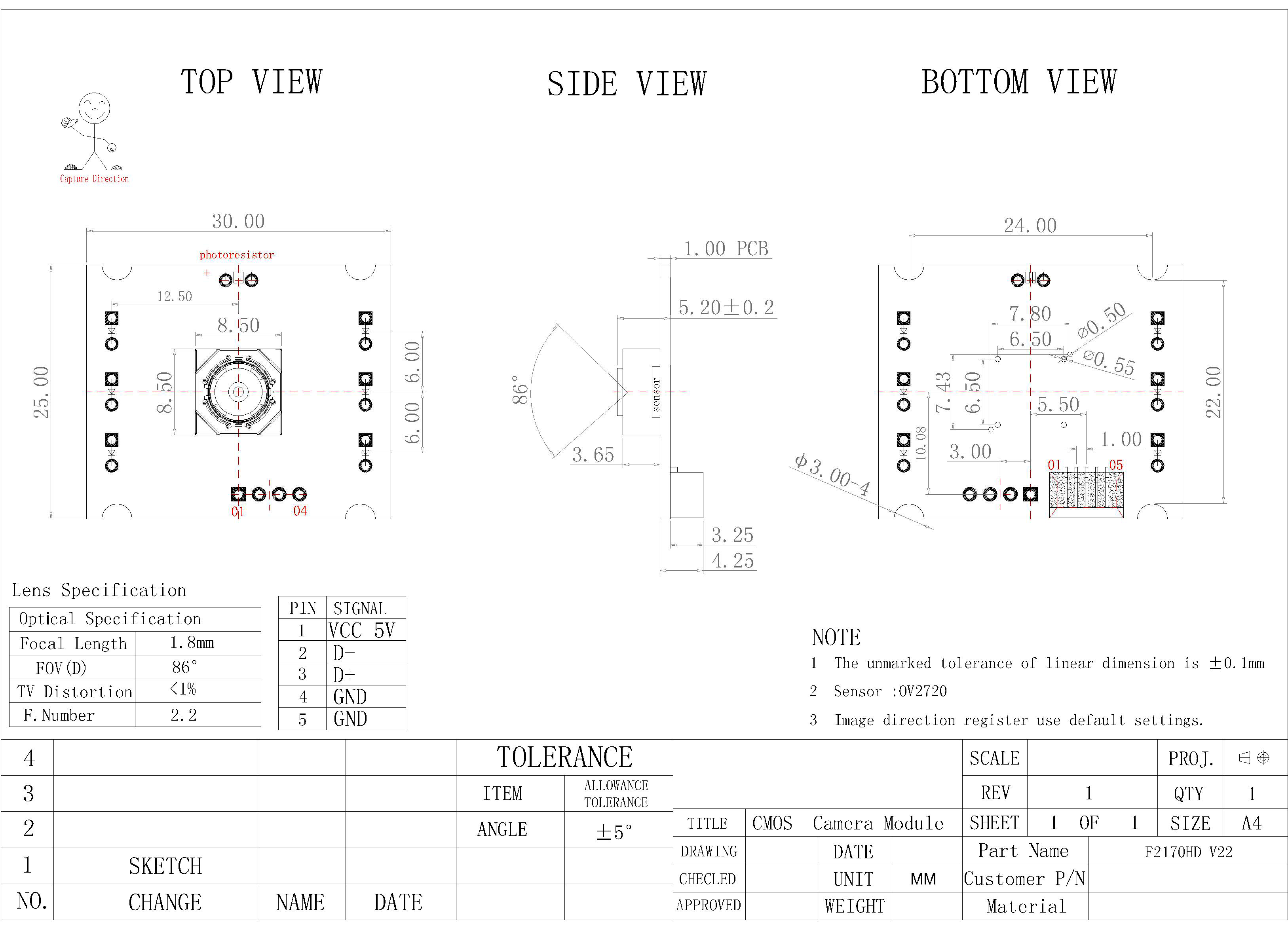 | Sensor | OV2720 (1/5.8" ) | ||