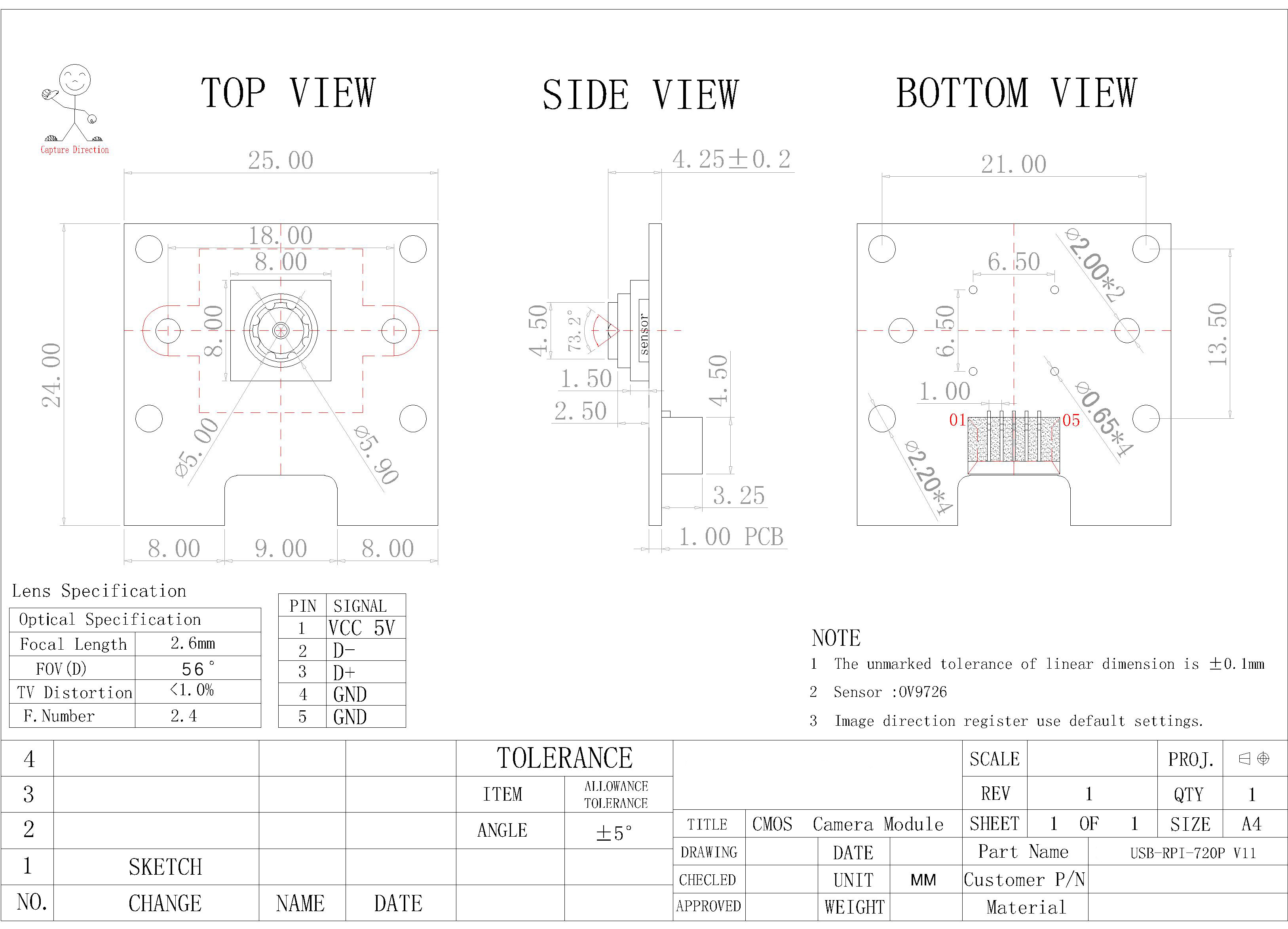 | Module Size | 25mm × 24mm × 4.25mm±0.2MM |