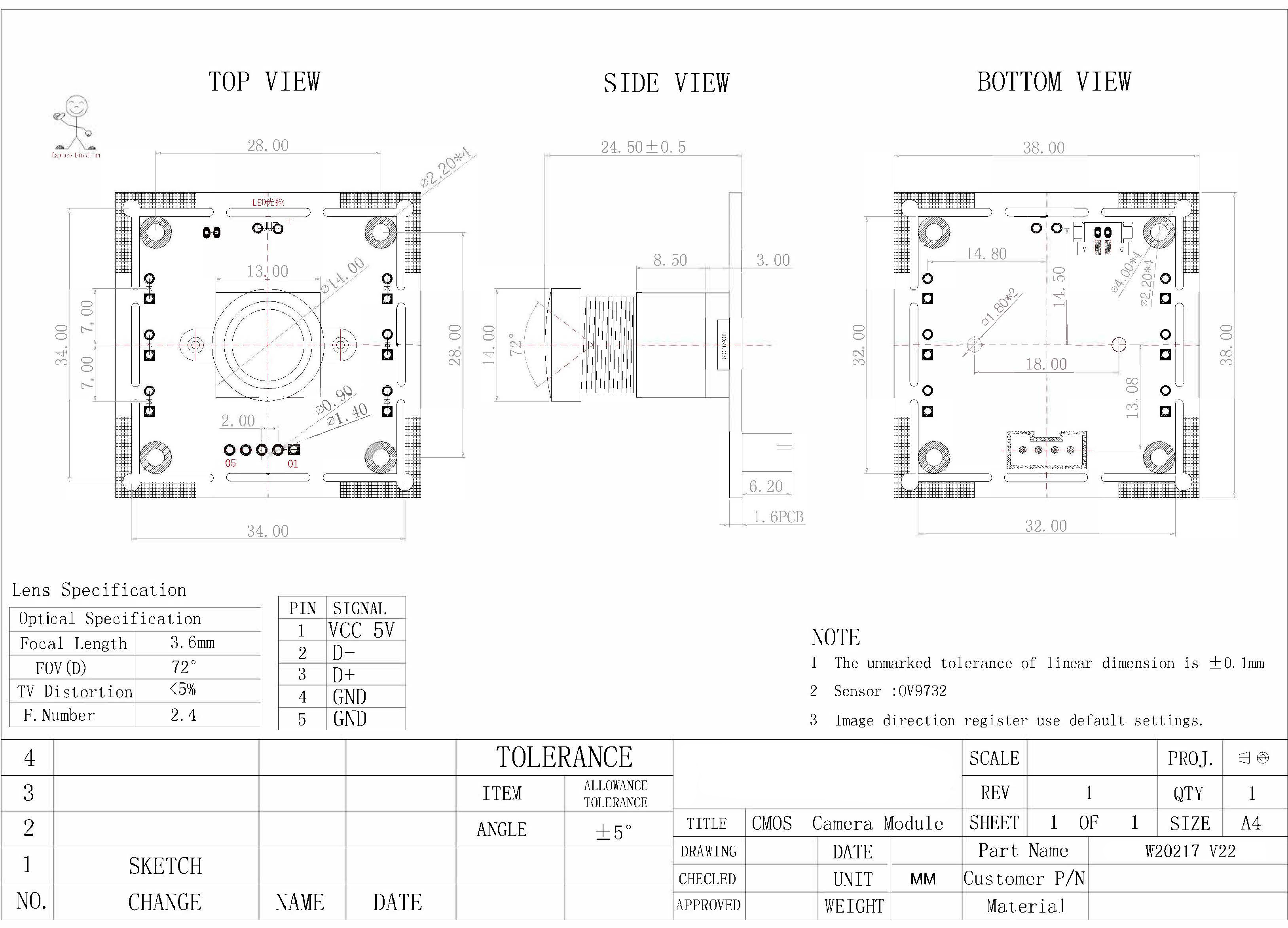 | Module Size | 38mm × 38mm × 24.5mm±0.5MM |