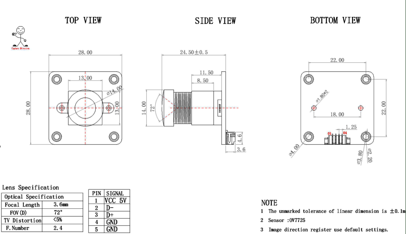 3.Durable and Compact Design: The camera measures 28mm x 28mm, making it an ideal choice for installations where space is limited.
