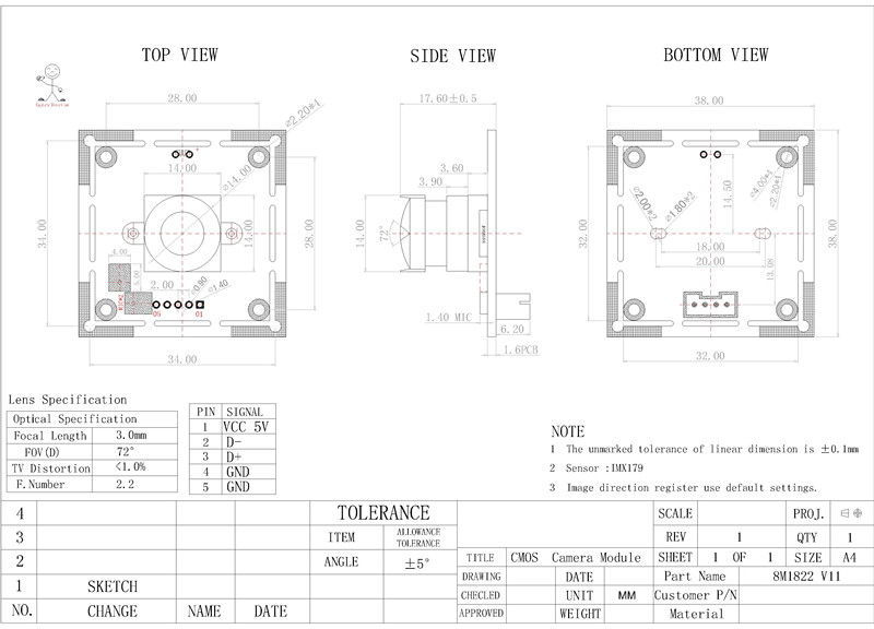 Module Size | 38mm × 38mm × 17.6mm±0.2MM |