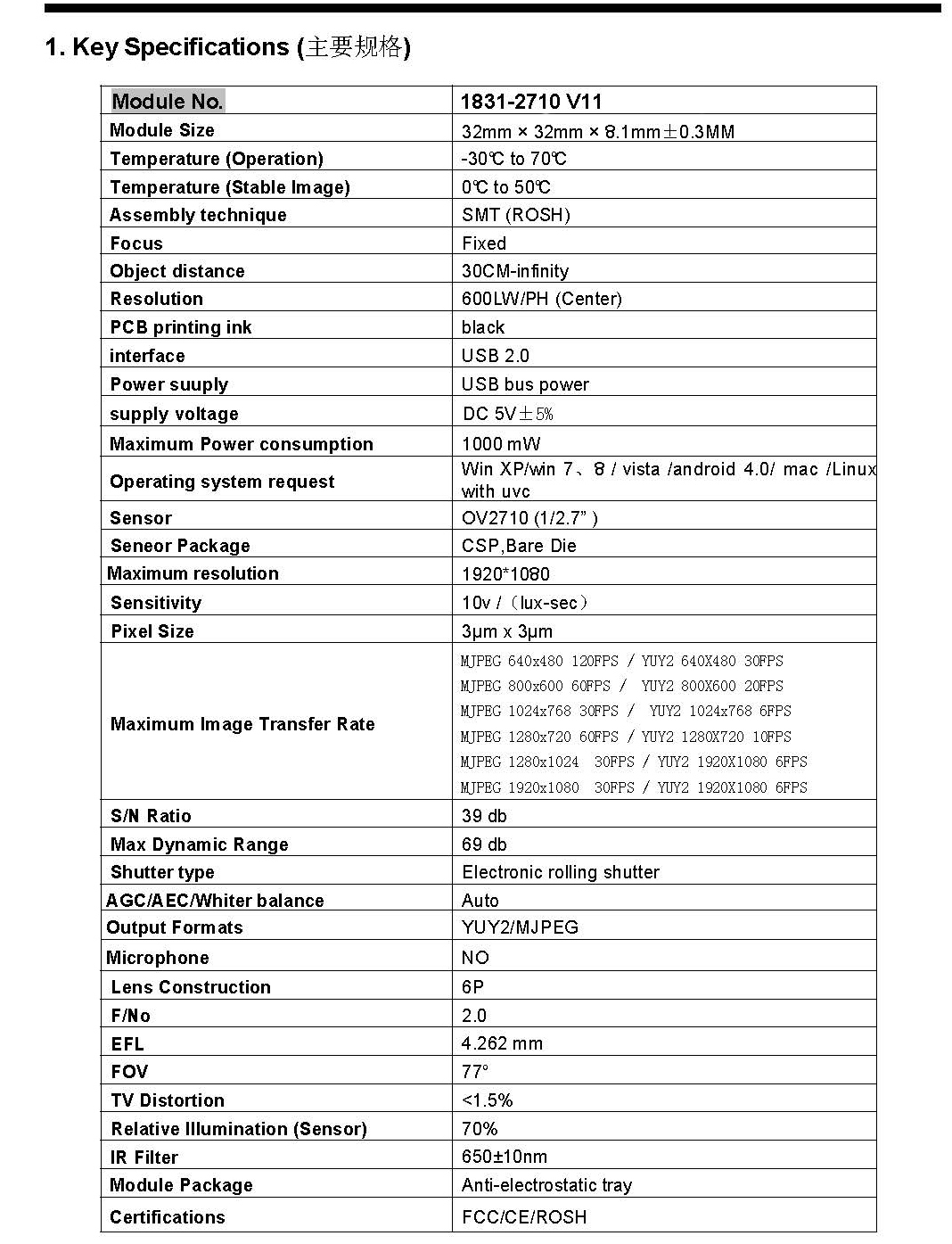 | Maximum Image Transfer Rate | MJPEG 640x480 120FPS / YUY2 640X480 30FPS MJPEG 800x600 60FPS / YUY2 800X600 20FPS MJPEG 1024x768 30FPS / YUY2 1024x768 6FPS MJPEG 1280x720 60FPS / YUY2 1280X720 10FPS MJPEG 1280x1024 30FPS / YUY2 1920X1080 6FPS MJPEG 1920x1080 30FPS / YUY2 1920X1080 6FPS | ||