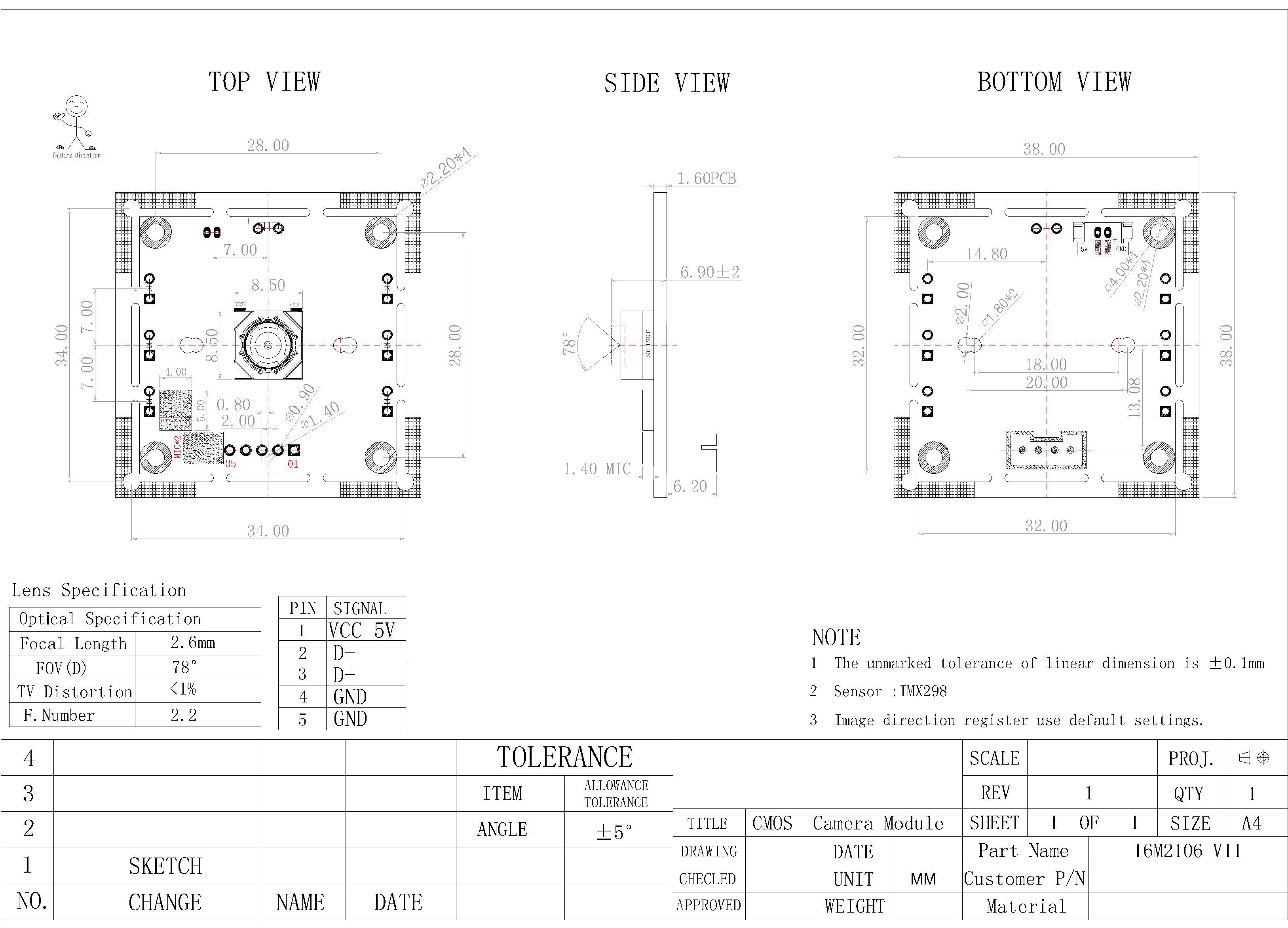 16 MP 4K Industrial Camera Advertising Machine Equipment Embedded Built-in Camera Module