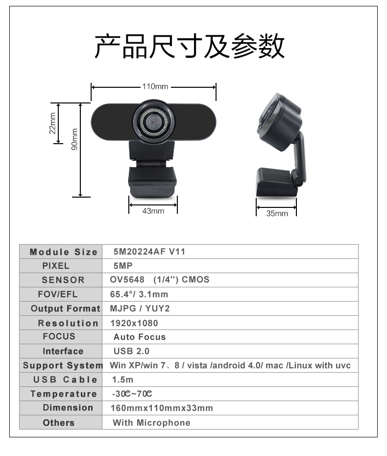 Support Microphone Auto Focus CMOS OV5648(1/4) Webcam Camera Digital USB2.0 5MP Pc web cam usb camera 4k laptop