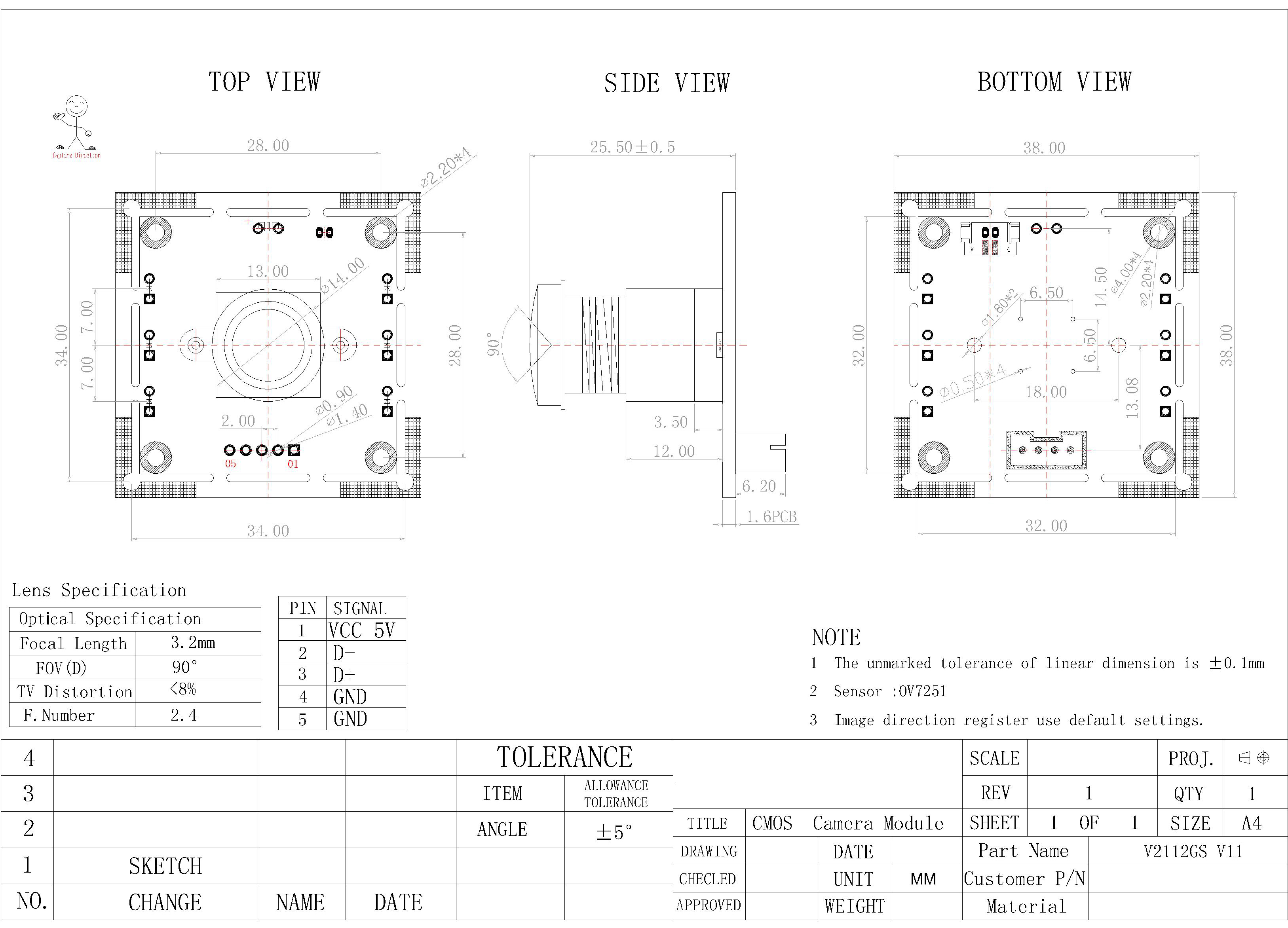 Product name | 300,000-pixel global exposure black and white high-speed scanning camera module | ||