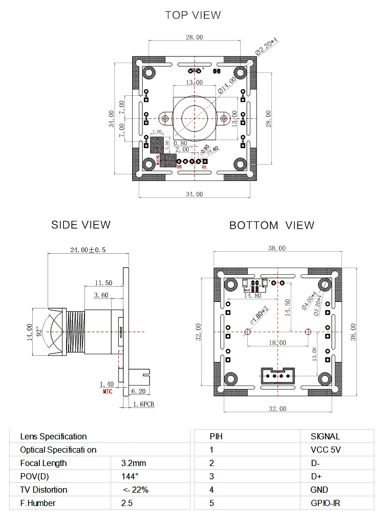 | Module Size | 38mm × 38mm × 24mm±0.5MM | ||
