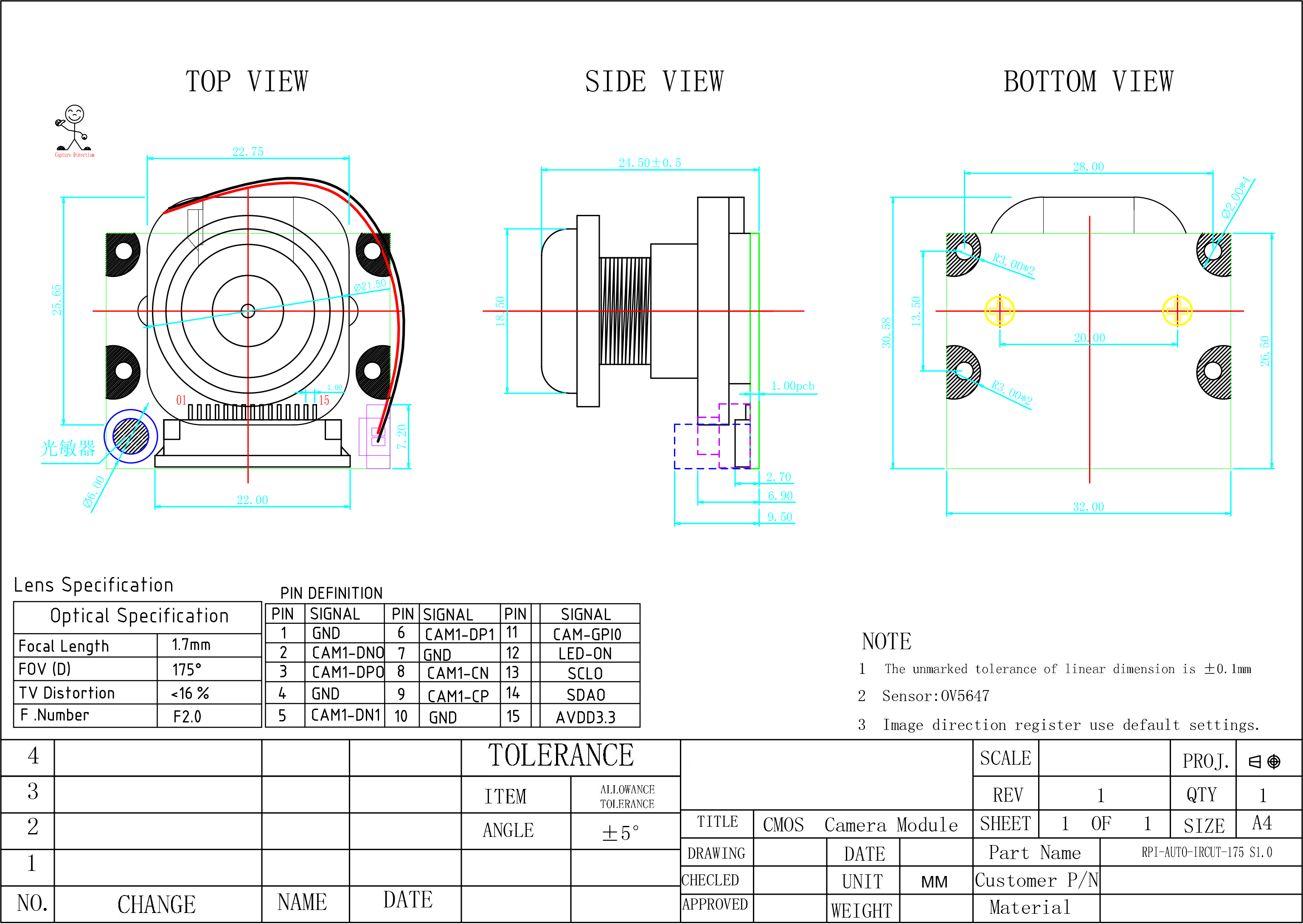| Sensor Type | OV5647 (1/4" ) |