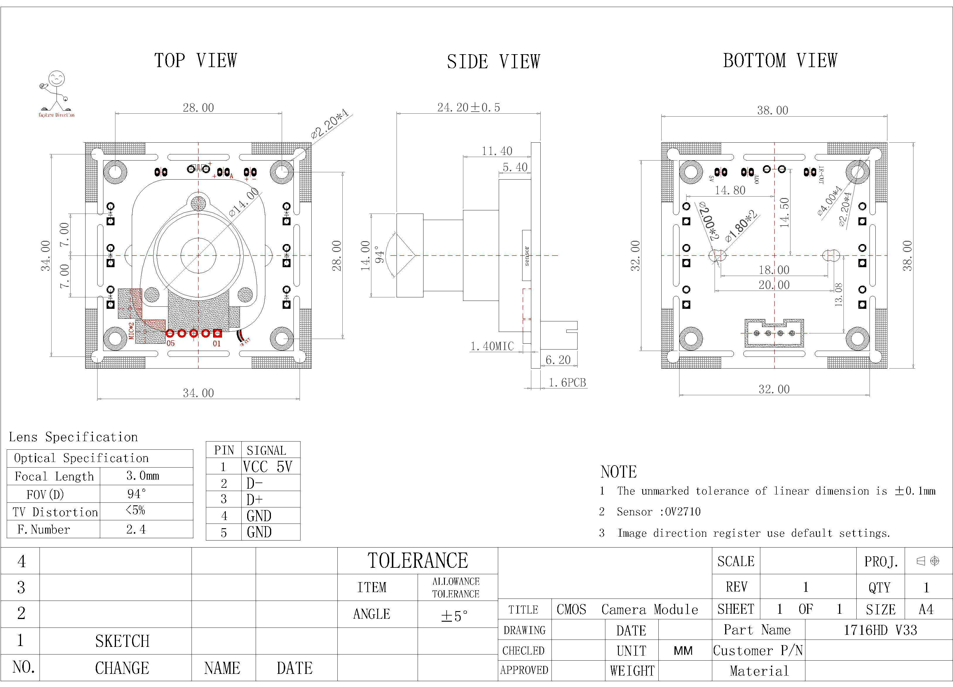 | Module Size | 38mm × 38mm × 24.2mm±0.5MM |