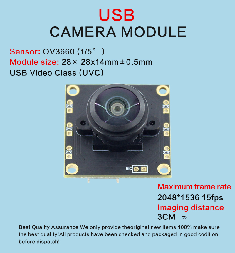 3MP HD OV3660 Wide Angle 160 Degree Resolution 2048*1536 mini USB2.0 Camera Module