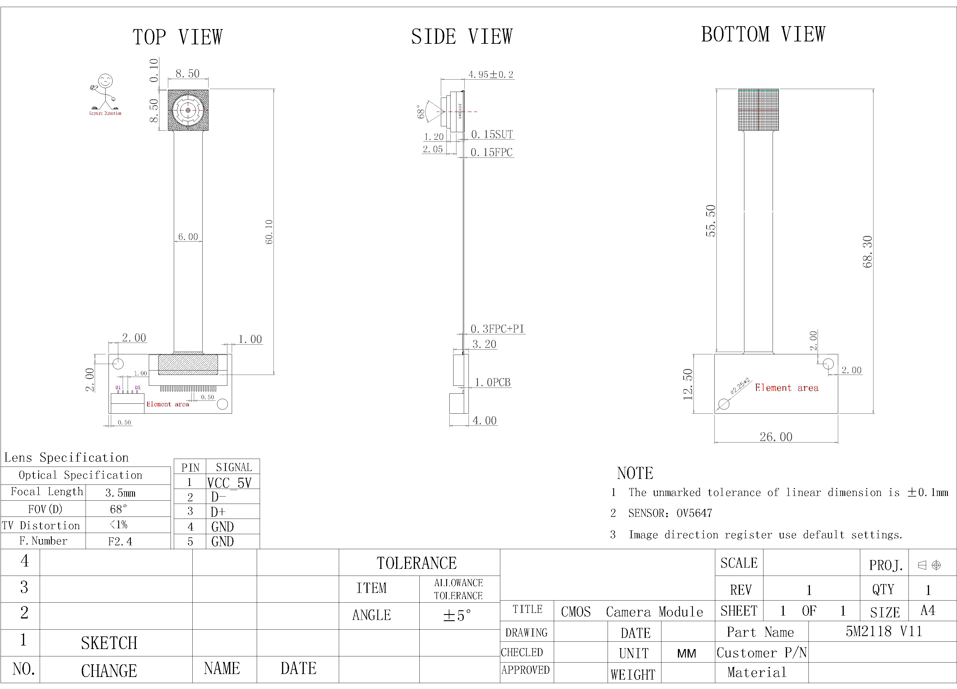 | Product name | 5 MP 2K soft and hard board docking flexible structure, device embedded built-in camera module | ||