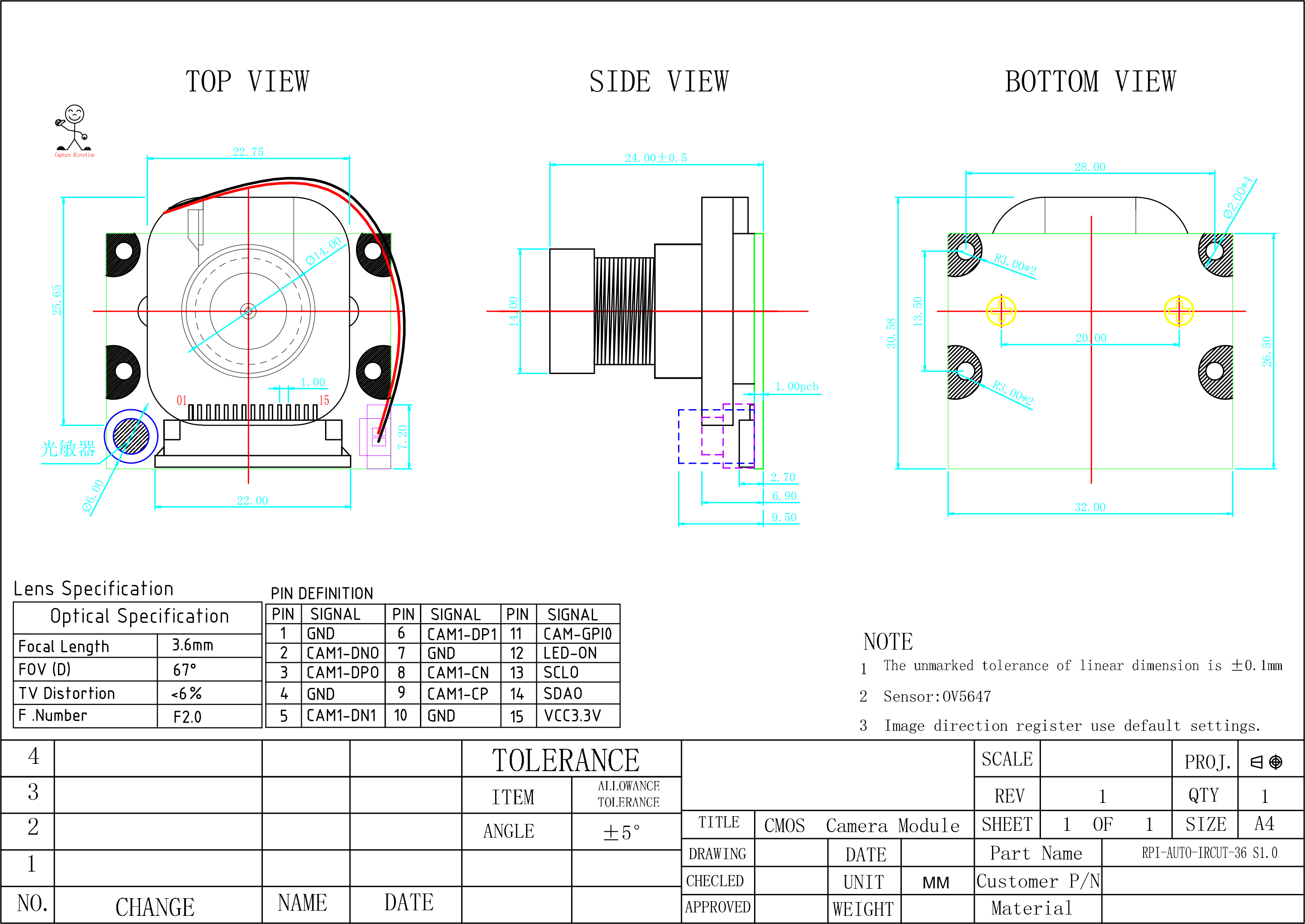 Low Power Night Vision 5MP 2 3 4b IR-CUT Focus Automatic Switch camera raspberry pi module