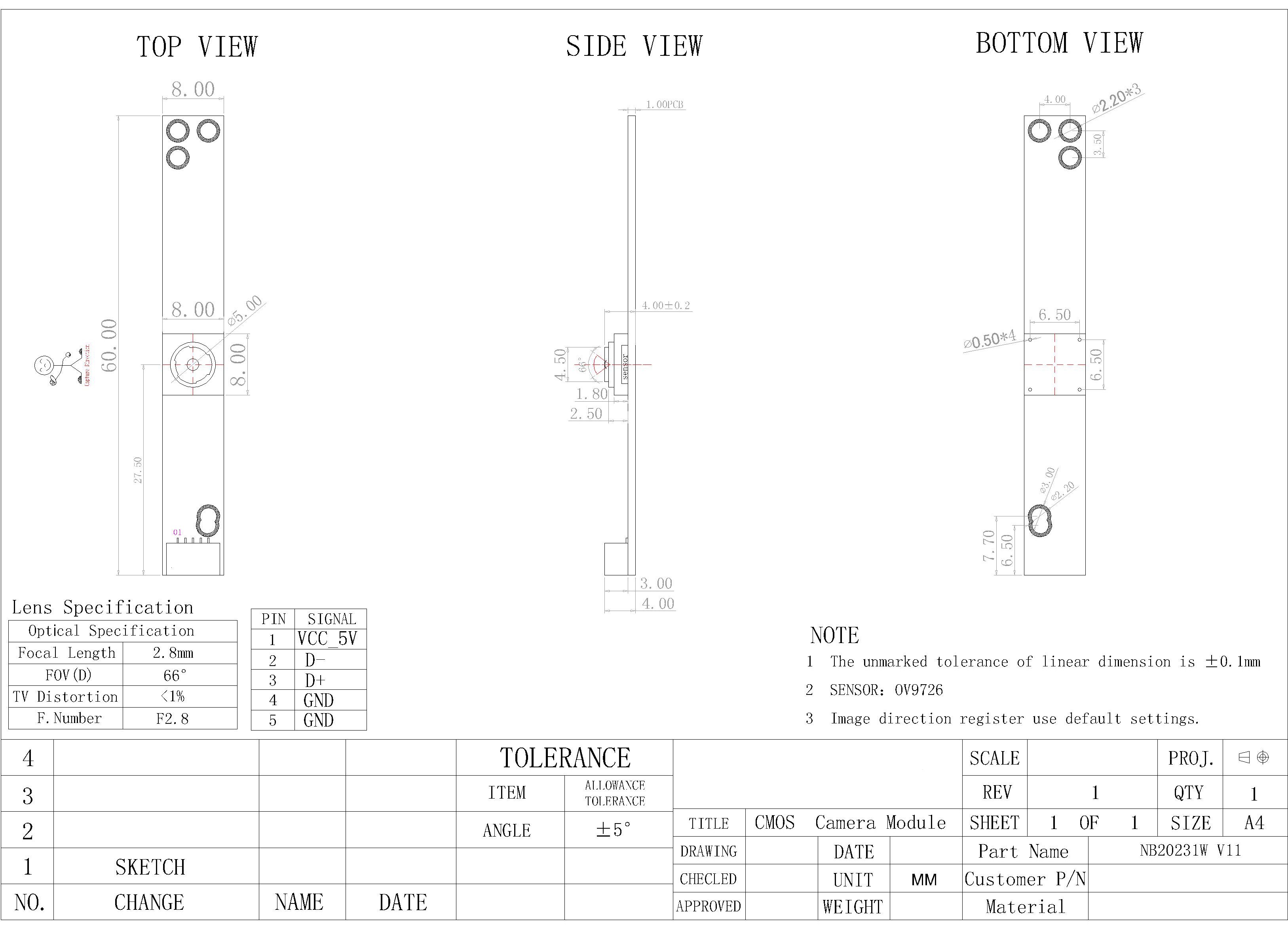 Product name | 1 MP Laptop , advertising machine, all-in-one camera module | ||