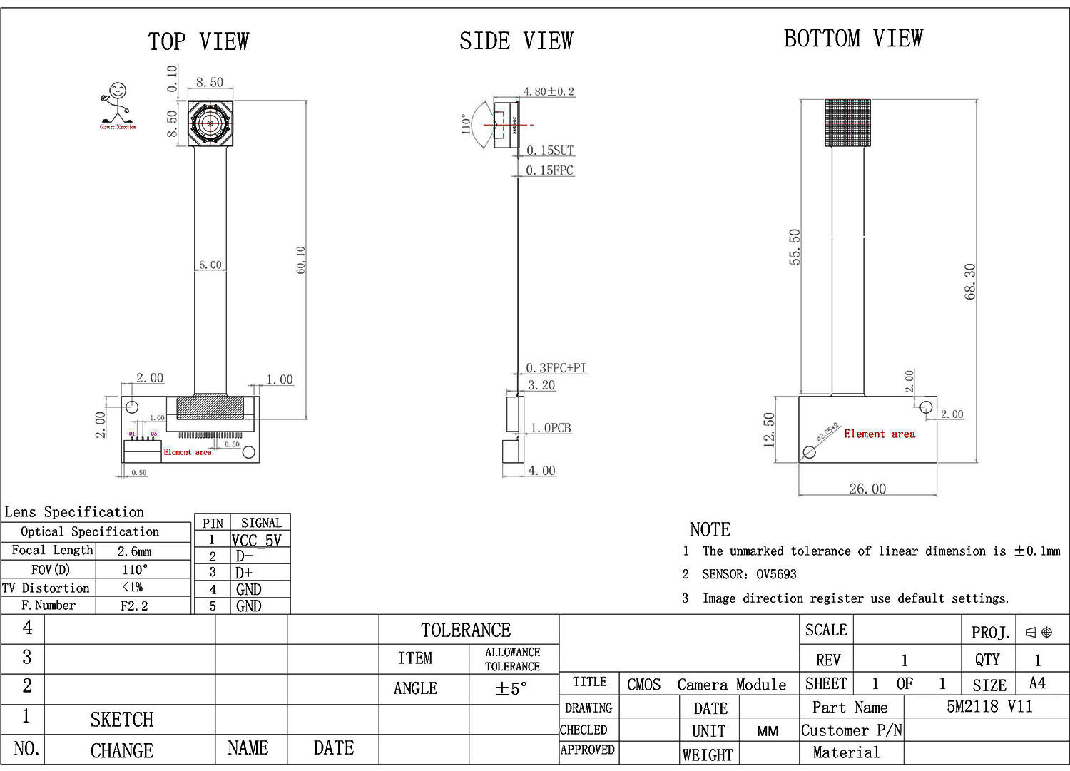 | Sensor | OV5693 (1/4" ) | ||