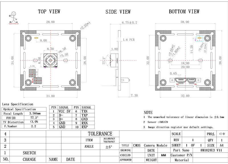 | Module Size | 38mm × 38mm × 6.75mm±0.2MM |
