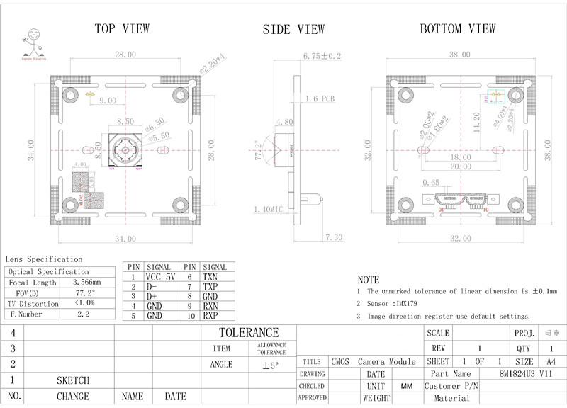 | Model Size | 38mm × 38mm × 6.75mm±0.2MM |