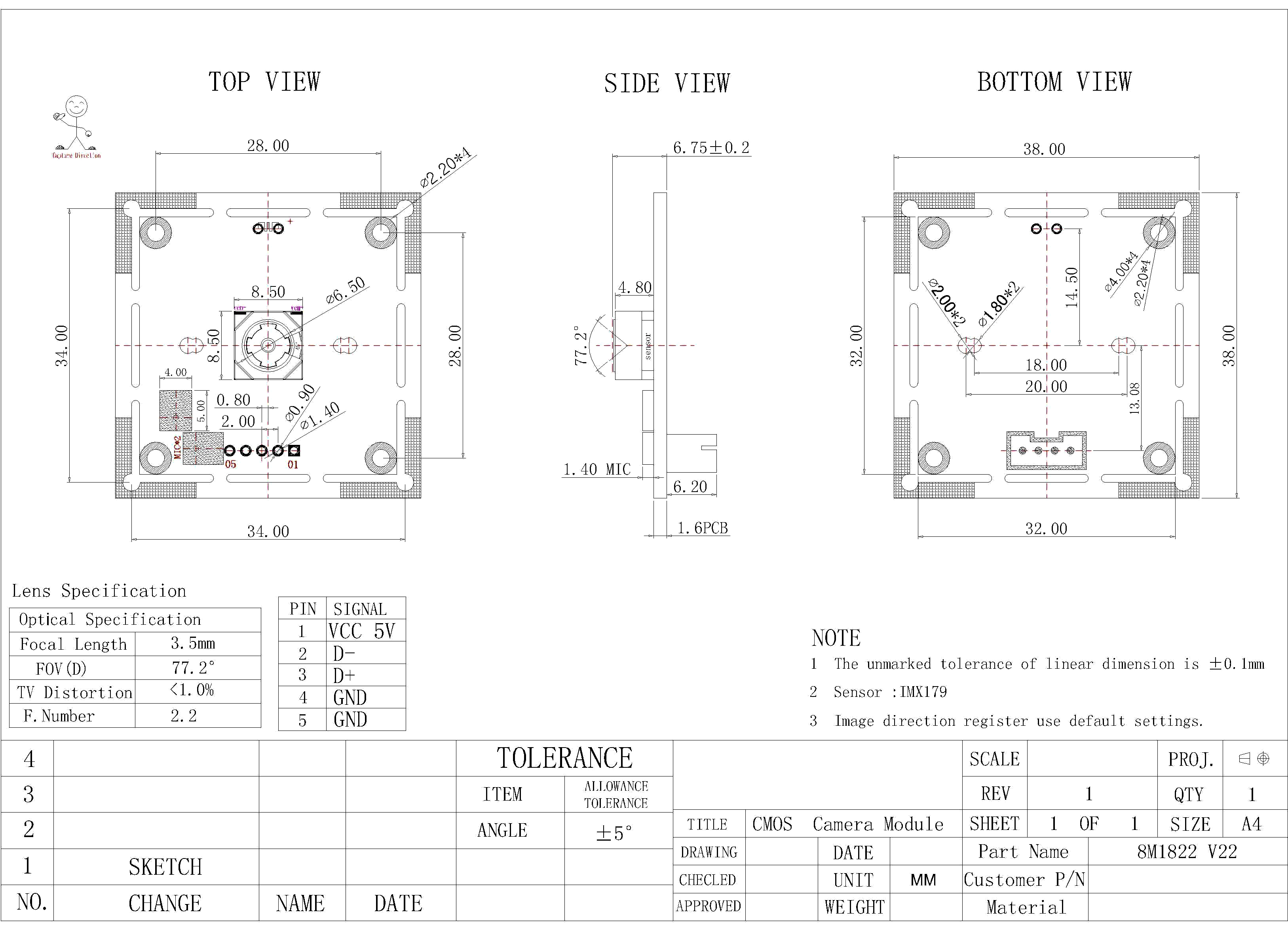 | Module Size | 38mm × 38mm × 6.75mm±0.2MM |