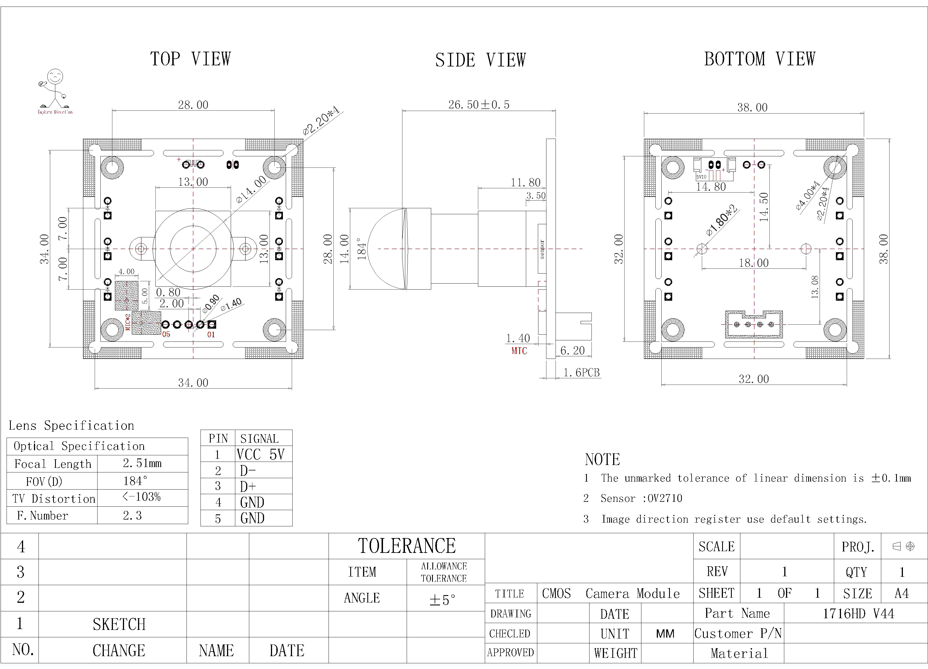 | Sensor | OV2710 (1/2.7" ) | |