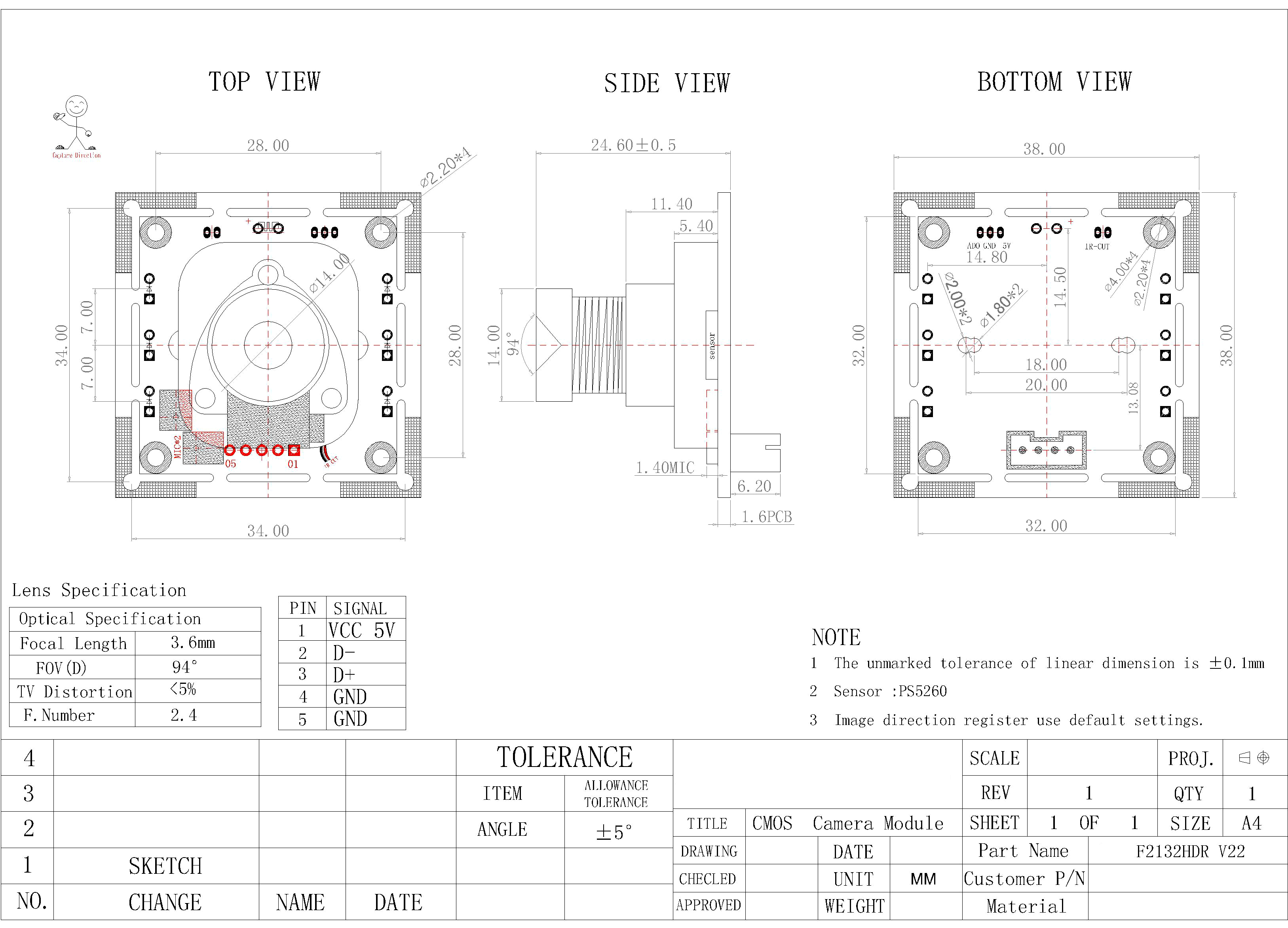 | Module Size | 38mm × 38mm × 24.60mm±0.5MM | ||
