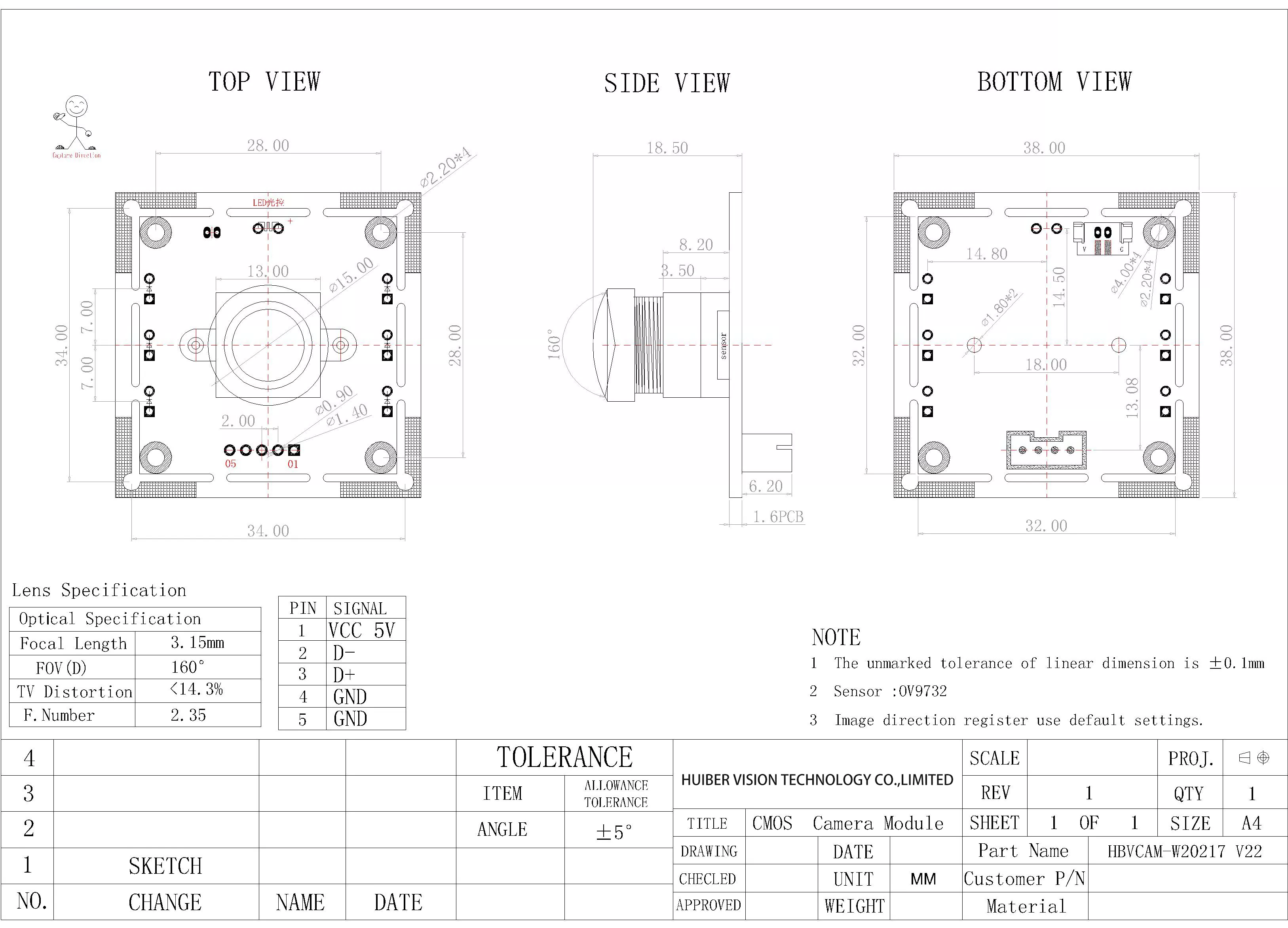 | Module Size | 38mm × 38mm × 18mm±0.5MM | ||