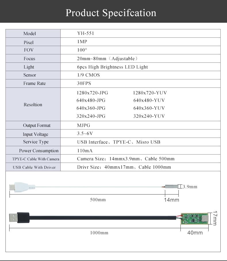 Portable Waterproof inspection USB HD Medical Mini Endoscope Camera Module
