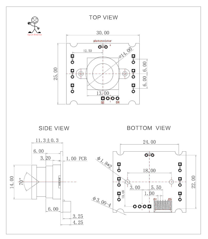 | Module Size | 30mm × 25mm × 4.2mm±0.2MM |