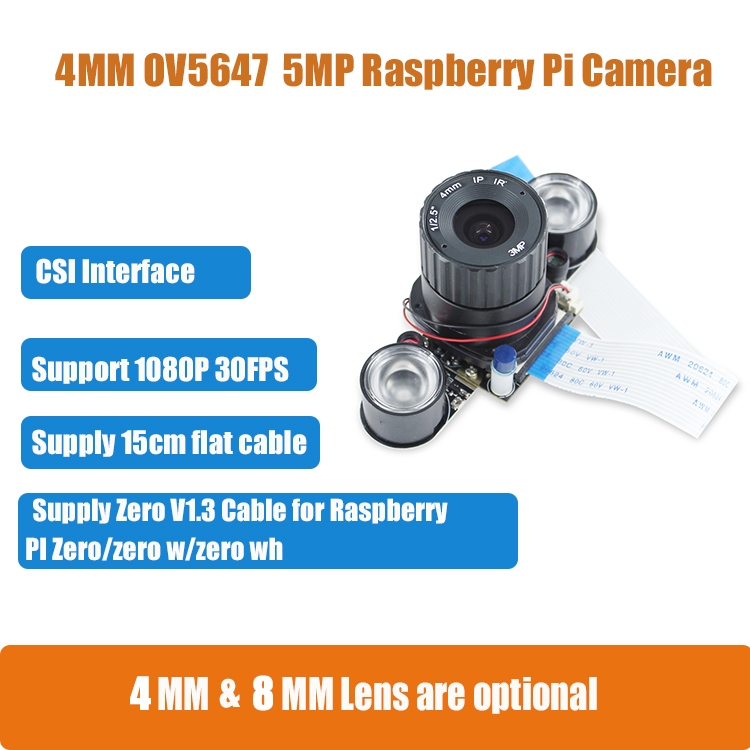5MP OV5647 4mm Lens Automatic switching IR-CUT Infrared Night Vision Noir Raspberry pi B 4/3/2 generation
