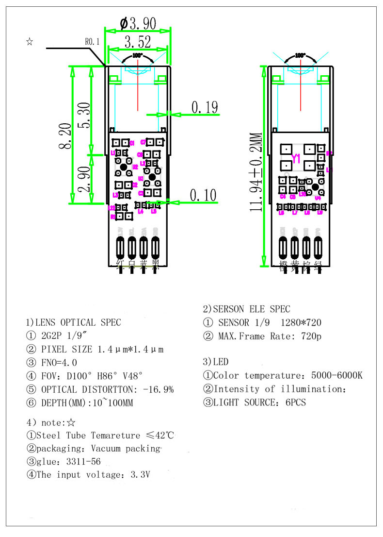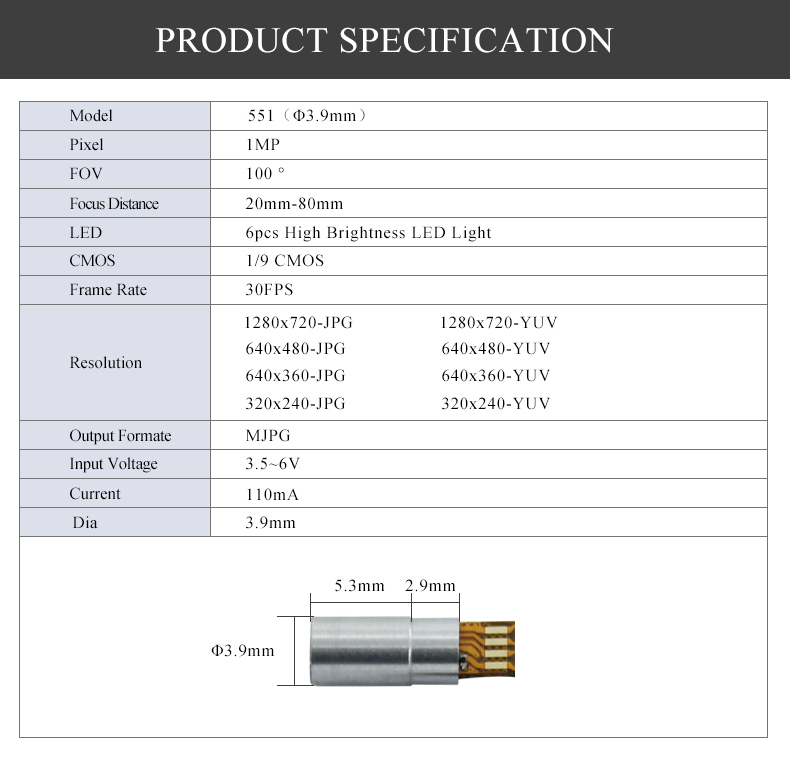 1MP HD 1/9" CMOS 3.9mm endoscope camera with 6pcs high brightness LED light