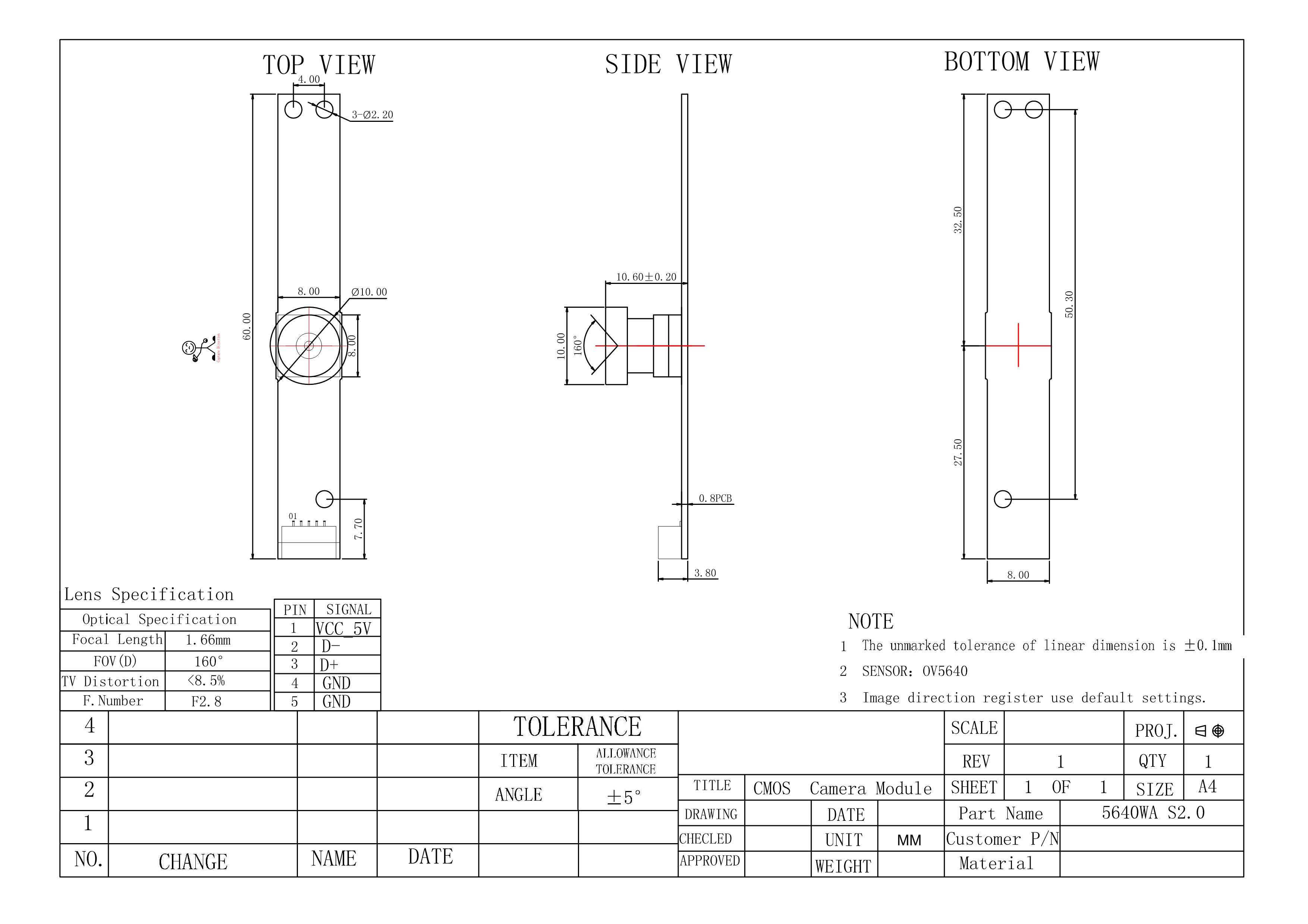Fixed focus high resolution 2592*1944 5MP OV5640 CMOS Interface USB2.0 wide angle 160 degree camera module