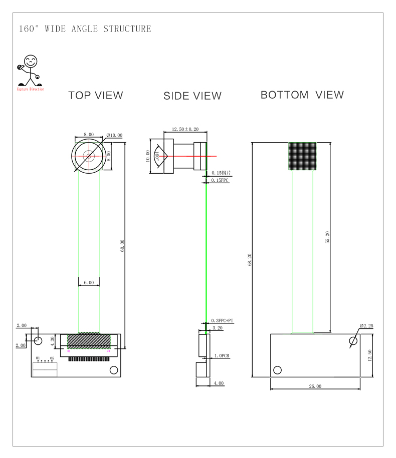 Wide Angle 160degree fisheye lens OV5640 FPC cmos USB Camera module